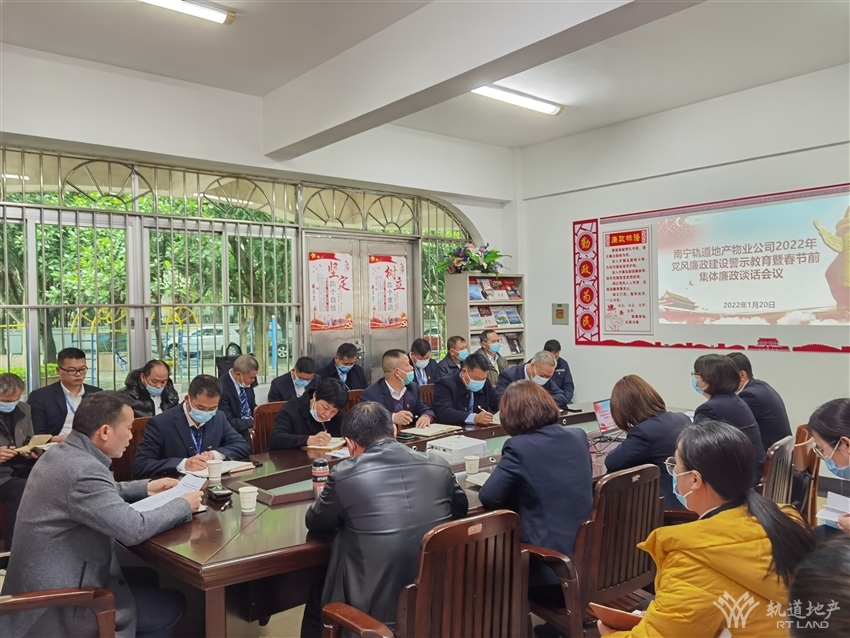 為深入學習貫徹黨的十九屆六中全會、十九屆中央紀委六次全會及自治區(qū)第十二次黨代會精神,推進公司黨風廉政建設和反腐敗工作,增強全體黨員干部的廉潔自律意識,2022年1月20日,軌道地產物業(yè)公司黨支部在公務員小區(qū)會議室召開2022年黨風廉政建設警示教育暨春節(jié)前集體廉政談話會,軌道地產物業(yè)公司全體黨員、入黨積極分子共36人參加了此次會議。