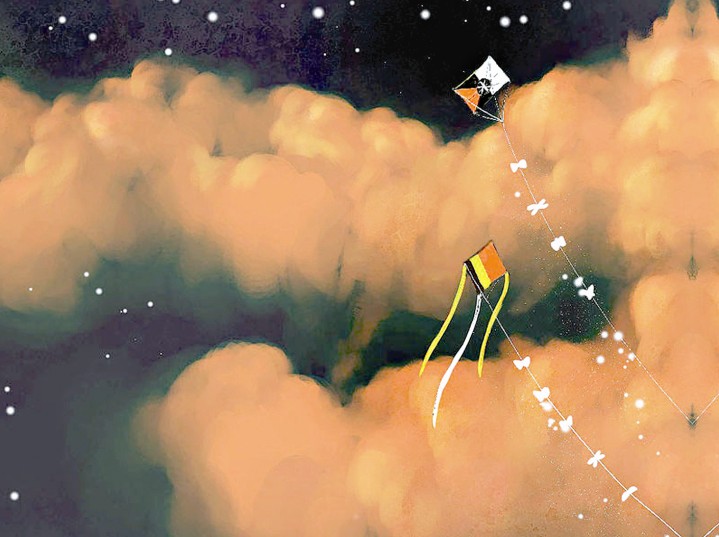小囡囡就這么仰望著那個高掛在天上的風箏,她也不去追,不去搶。因為看著風箏還在天上,心里就還有夢。如果把它拿在手上,可能,她就再也不會做夢了!