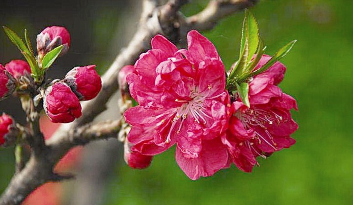 桃花是我國(guó)傳統(tǒng)的園林花木,其樹(shù)態(tài)優(yōu)美,枝干扶疏,花朵豐腴,色彩艷麗,為早春重要觀花樹(shù)種。桃花原產(chǎn)于我國(guó)中部及北部,栽培歷史悠久,現(xiàn)各地廣為種植。性喜陽(yáng)光、耐寒、 耐旱、不耐水濕。