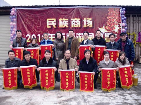 2012年1月6日下午,商場五樓天面人聲鼎沸、喜氣洋洋,商場全體員工與商場幾百名經(jīng)營戶歡聚一起,成功舉辦了商場2012年度迎春游園會(huì)暨2011年度文明經(jīng)營戶表彰大會(huì),楊錦清、鄧振芬等15名商場文明經(jīng)營戶獲得了表彰。